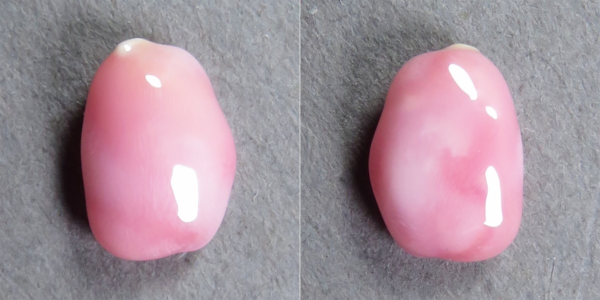 いびつな形ですが、綺麗な柔らかいピンクの地色を持つ1ctupのコンクパールです。